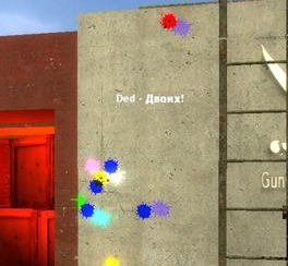 *Описание:* По умолчанию вы можете видеть около 100 следов от пейнтбольных шаров. Но если вы хотите увеличить этот лимит, вы должны ввести в консоли клиента (!) команду "mp_decals 2000" (тогда будет возможно видеть около 1000 следов от пейнтбольных шаров на карте). *Требования:* Counter-Strike: Source SourceMod 1.2.0 и выше Включенный *clientprefs* плагин SourceMod *CVARs:* sm_paintball_version - версия плагина sm_paintball_prefdefault - Настройки по умолчанию для новых пользователей. (По умолчанию: 1) Команды: say !paintball - показать меню настроек paintball. Установка: Распаковать в папку сервера. | |