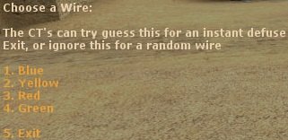 Описание: - Выбор правильного провода - мгновенное обезвреживание - Выбор не правильного провода - мгновенный взрыв Если у вас нет комплекта для быстрого обезвреживания, тогда вероятность 50% что бомба взорвётся еще будет, если вы выберите неправильный провод. T также получают возможность выбрать правильный провод, иначе провод будет выбран случайно. Игнорирование меню или выбор опции выход, как правило, позволит продолжить игру. Настройки: Установка: | |