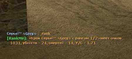 Отличный плагин статистики для сервера. Содержит как серверную часть, Фунции: = Rank игрока по STEAM:ID или по ИМЕНИ. = Статистика убийств/смертей. = Статистика точности. = Статистика оружия. = Статистика игрока по очкам. = Статистика попаданий. = Статистика времени проведения в игре. = Учет статистики бомб и заложников. = Статистика VIP персоны(as_ карты). = Статистика изменений на текущей карте. = Перевод = Авточистка неактивных игроков. = База данных SQLite. = Полная CVars настройка. = Установка минимального колличества убийств, чтобы войти в рейтинг. = Set multiplier for losing points. = Возможность скрыть изменения баллов в чате. = Расширения. = Импорт из Mani Admin Plugin. = Возможность использовать веб-интерфейс, так как у этого есть система экспорта. = База данных rank.sql может экспортируется в папку cstrike. = Для веб-интерфейса, требуется веб-сервер с PHP и MySQL. Балловая система оценки: = Каждый игрок начинает с 1000 очков. = For each kill is given 2 points plus 1 point for each 100 points difference between the killer and the killed. = Поскольку каждая смерть взята то же самое количество, которое дано убийце. = За убийство в голову дают 1 пункт. = За убийство с ножом данные пункты удваиваются. = За установку C4, дается 2 пункта для каждого террориста плюс 2 пункта для того, который заложил. = За взрыв C4, дается 2 пункта для каждого террориста плюс 2 пункта для того, который заложил. = За обезвреживание C4, дается 2 пункта для каждого контртеррориста плюс 2 пункта для того, кто разминировал. = За спасение заложника, дается 2 пункта для каждого контртеррориста плюс 2 пункта для того, кто спас заложников. = За сбежавшую VIP персону, дается 2 пункта для каждого контртеррориста плюс 2 пункта для того, кто убежал. = За убийство VIP, дается 2 пункта для каждого террориста плюс 2 пункта для того, который убил. Команды: = Клиентские команды: = session = statsme = hitboxme = weaponme = rank = next (в чате) / sm_next (в консоле, необходимо, потому что уже может быть ConCommand, зарегистрирована как next), = top = top x (x равняется числу) (также topx в чате) = topknife = topknife x (x равняется числу), = resetmyrank = Админские команды (root флаг): = resetrank "STEAM:ID" (не забывайте кавычки), = rankpurge X (x равняется числу дней неактивности), = resetrank_all = rankme_import_mani (импортируют данные о rank из Mani Admin Plugin) = rankme_remove_duplicate (remove duplicated rows) ConVars: = rankme_version-> Версия RankMe Вы можете, найти CVars в cfg/sourcemod/rankme.cfg. (Файл будет автоматически сгенерирован). = rankme_enabled-> RankMe включен? 1 = да 0 = нет. = rankme_rank_by_name -> Rank игроков по имени? 1 = да 0 = нет. По умолчанию 0. = rankme_rankbots-> Учет статистики ботов ? 1 = да 0 =нет. = rankme_changes_chat-> Показывать изменения в чате? 1 = да 0 = нет = rankme_ffa -> режим FFA? 1 = да 0 = нет. По умолчанию 0. = rankme_rank_mode -> Как вести ранк? 1 = по очкам 2 = по KDR. По умолчанию 1. = rankme_mysql -> Использовать MySQL? 1 = да 0 = нет (SQLite). По умолчанию 0. = rankme_sql_table -> Имя таблицы SQL. (Max: 100). По умолчанию "rankme". = rankme_dump_db -> Дамп датабазы в файл SQL? (required to be 1 if using the web interface and SQLite, case MySQL, it won't be dumped) 1 = да 0 = нет. По умолчанию 0. = rankme_autopurge-> Авточистка неактивные игроков? X = Дни 0 = не очищать. = rankme_points_bomb_defused_team->, Сколько очков давать команде CT, за разминирование C4? Значение по умолчанию 2. = rankme_points_bomb_defused_player->, Сколько очков давать игроку CT, разминировавшему бомбу? Значение по умолчанию 2. = rankme_points_bomb_planted_team->, Сколько очков давать команде T, за закладку C4? Значение по умолчанию 2. = rankme_points_bomb_planted_player->, Сколько очков давать игроку T, заложившему бомбу? Значение по умолчанию 2. = rankme_points_bomb_exploded_team->, Сколько очков давать команде T, за взрыв C4? Значение по умолчанию 2. = r