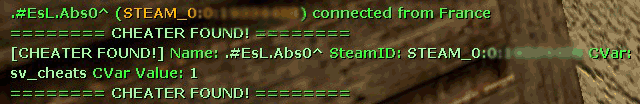 Античит для css. Проверяет параметры у игроков: 2. sv_consistency CVars: sm_vbac_version - Версия sm_vbac_value - sv_cheats - Не изменять sm_vbac_mysql - Значение по умолчанию: 0 , установите 1 если используете MySQL Banning Plug-in sm_vbac_sb - Значение по умолчанию:0 , установите 1 если используете Source Bans | |